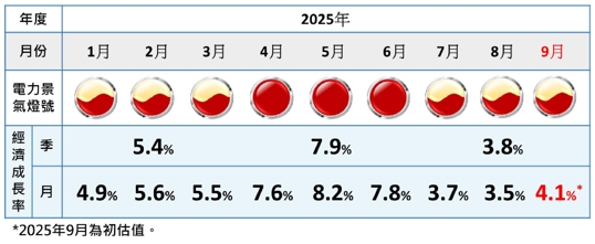 2025年9月,國內產業用電延續分化趨勢。隨著人工智慧(AI)浪潮持續擴展,高效能運算(HPC)、雲端及資通訊產品需求蓬勃發展,電子與半導體產業持續領航,用電穩健成長,成為經濟成長主要動能。傳統產業,受全球終端需求疲弱及美國關稅衝擊影響,用電需求持續下滑,產業景氣低迷。整體而言,全國高壓以上產業用電較去年同期成長 1.27%,電力景氣燈號維持黃紅燈。台電高壓以上用電方面,9月份整體產業用電較去年同期成長2.11%,其中製造業用電成長1.97%,服務業用電成長2.25%。